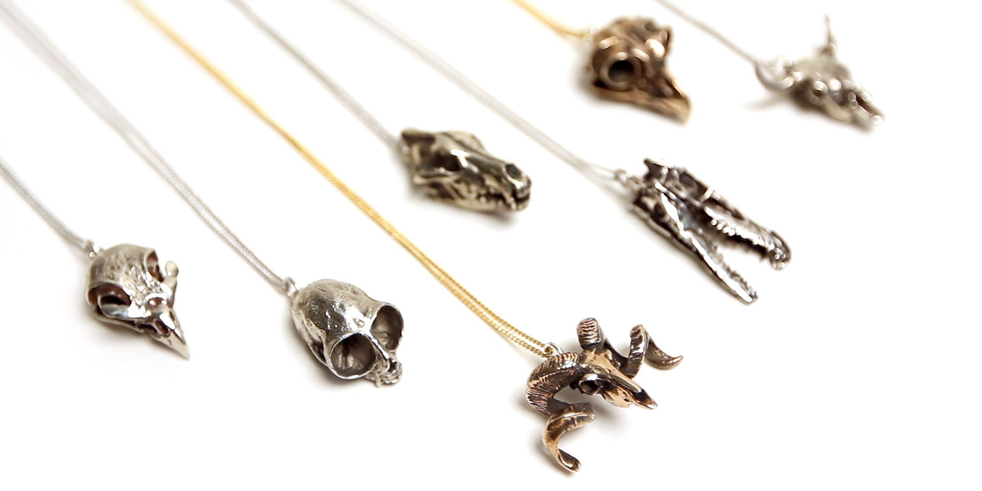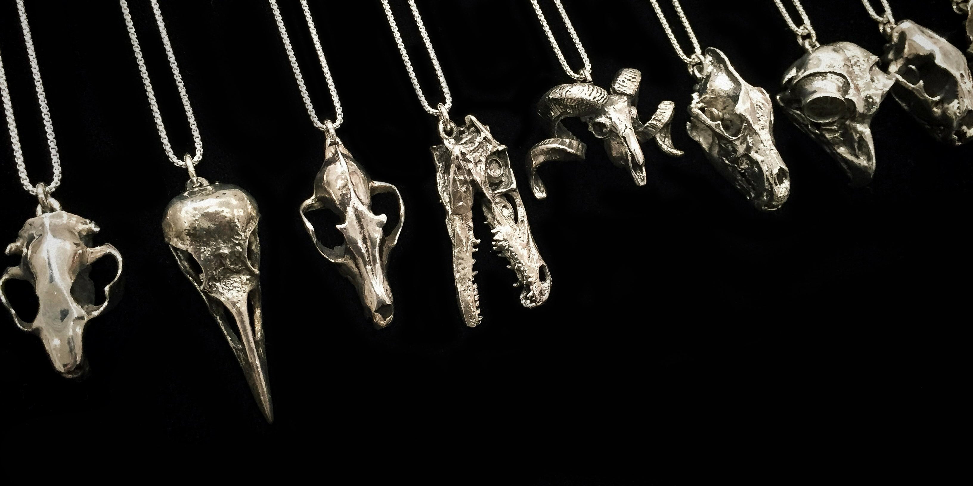Animal skull jewelry made from 3D scans of REAL skulls, 3D printed tiny, then molded and cast in small batches using traditional lost wax casting.