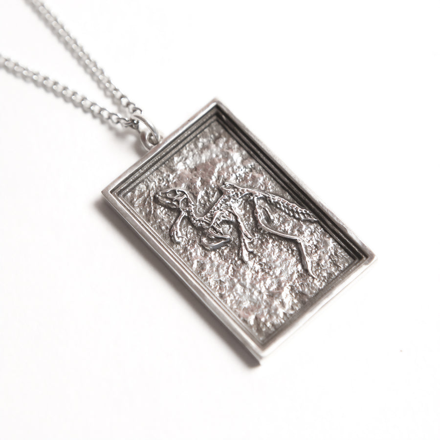 Heterodontosaurus tucki - The Heterodontosaurus lived during the Early Jurassic. These turkey-sized dinosaurs had three kinds of teeth, including a pair of canine-like tusks. Available in White Bronze, Yellow Bronze, and Sterling Silver Includes matching 24 inch chain. Wooden display base optional. Ships worldwide. Dimensions: 23mm x 34mm x 3mm